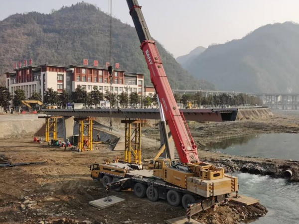 安康吊车出租|平利人行便桥吊装施工案例