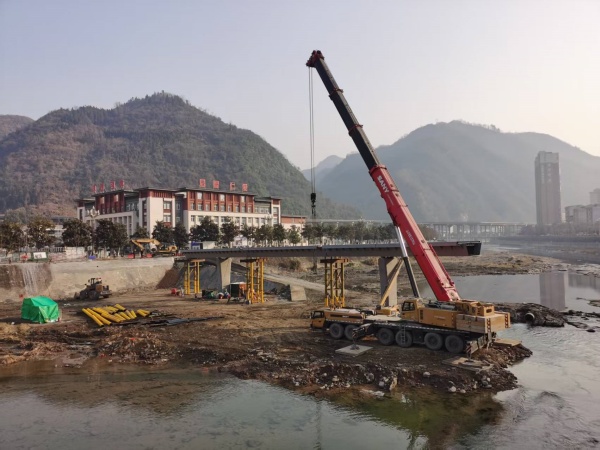 安康吊车出租,平利人行便桥吊装施工